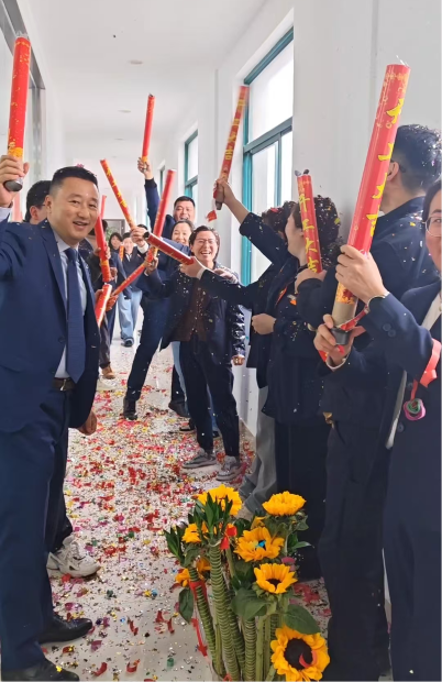 With the sales manager's announcement of "auspicious time has arrived, 3, 2, 1-", everyone shouted in unison: "New location, new home, performance will continue to soar! Good luck!" The salute cannons rang out in unison, and colorful paper fluttered, conveying the warmth and power of the ceremony to everyone.