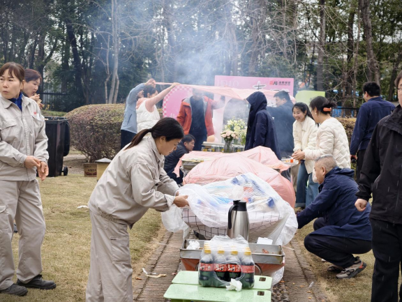 Before the event began, the colleagues from the Comprehensive Management Department rushed to the scene early and began intensive preparations. From the warm and elegant scene arrangement, to the meticulous inspection of game props, to the careful preparation of barbecue and hot pot ingredients, every detail is full of care, just to let everyone harvest full joy and warmth in spring.